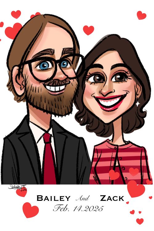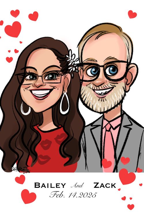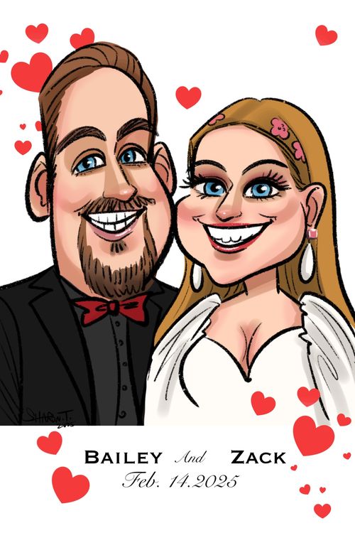 #weddings #valentine's day #wedding ideas #wedding activities #cartoon portrait #iPad art #digital caricatures #caricature artist #photo booth #photographer #wedding favors